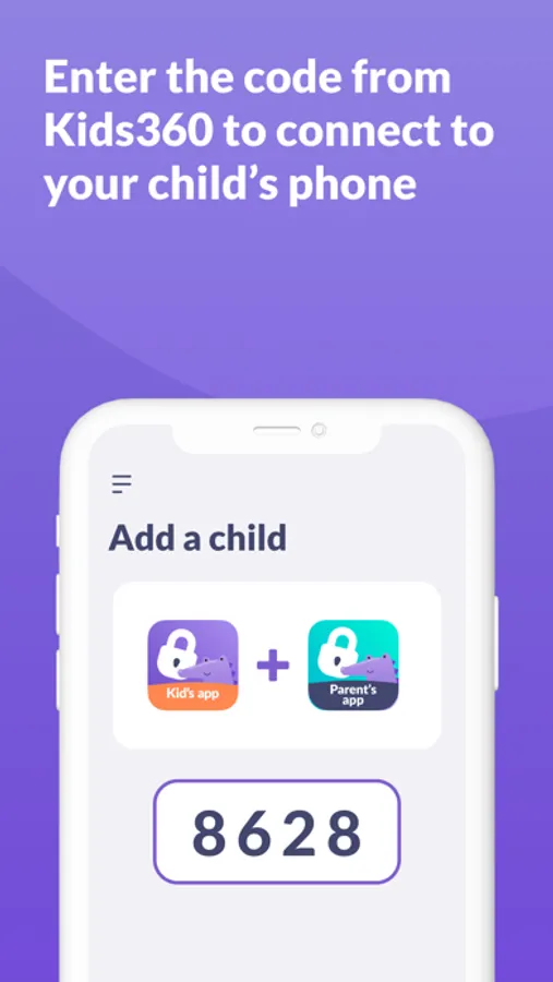 2. Install the “Kids360” app on your teen's phone and enter the link code with the parental device;