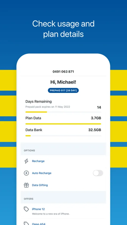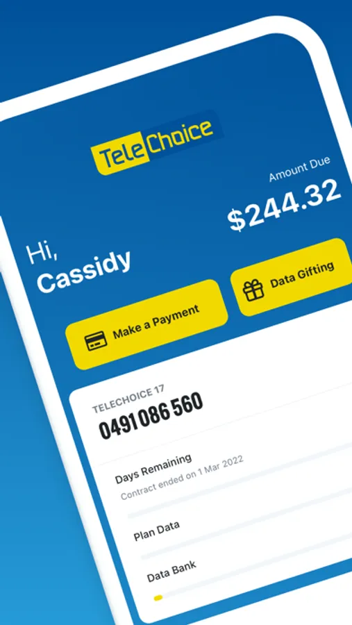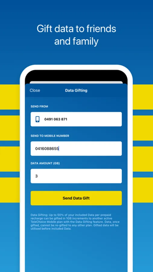The mobile app now includes Data Gifting, so you can share excess data with your family or friends.