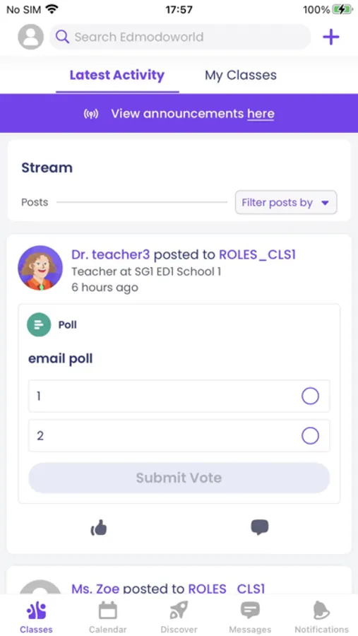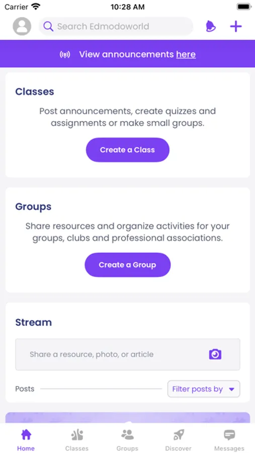 Edmodoworld empowers teachers to connect and extend their class outside of school. It includes communication tools to facilitate posts and messages, quiz creation, and the sharing of content and digital assignments. Teachers can connect with peers and find inspiration for their next lesson by exploring the Discover area, browsing Spotlight, or following hashtags in edmodoworld.