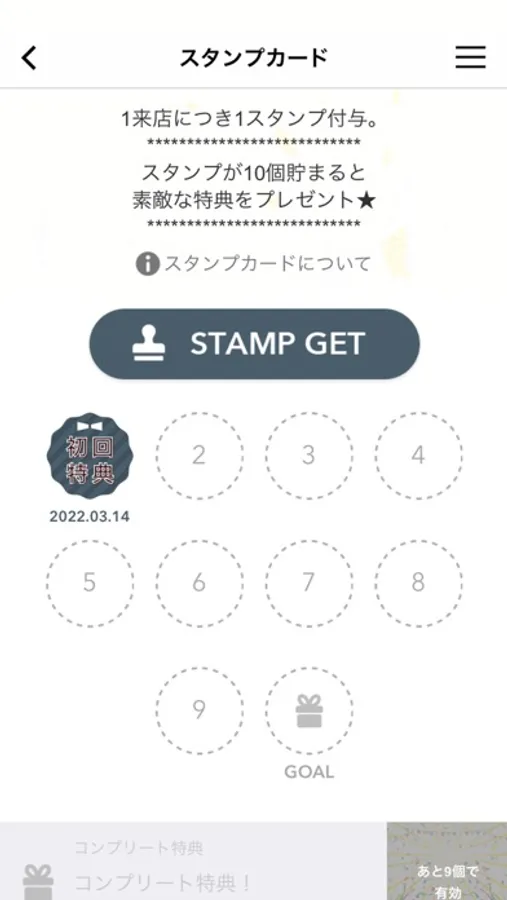 ・ご来店ごとにたまるスタンプカード。