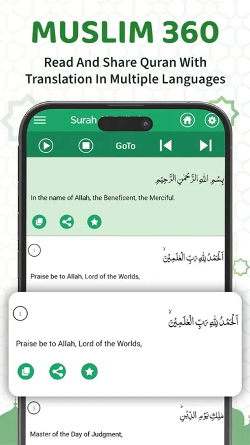 • Search and Jump directly to any Ayah of your choice in any Surah of the Holy Quran and start reading from there.