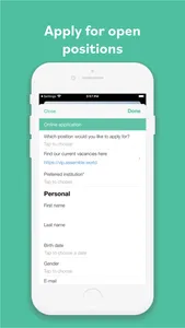 On the front page you can view open positions and apply directly for them with your information, CV and cover letter. The @Work Akidemy app gives you the entrance to work at CompaNanny International BV GmbH, with communication and employment contracts directly in the app.