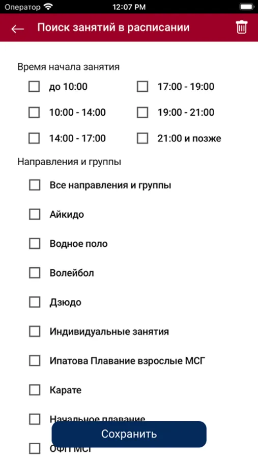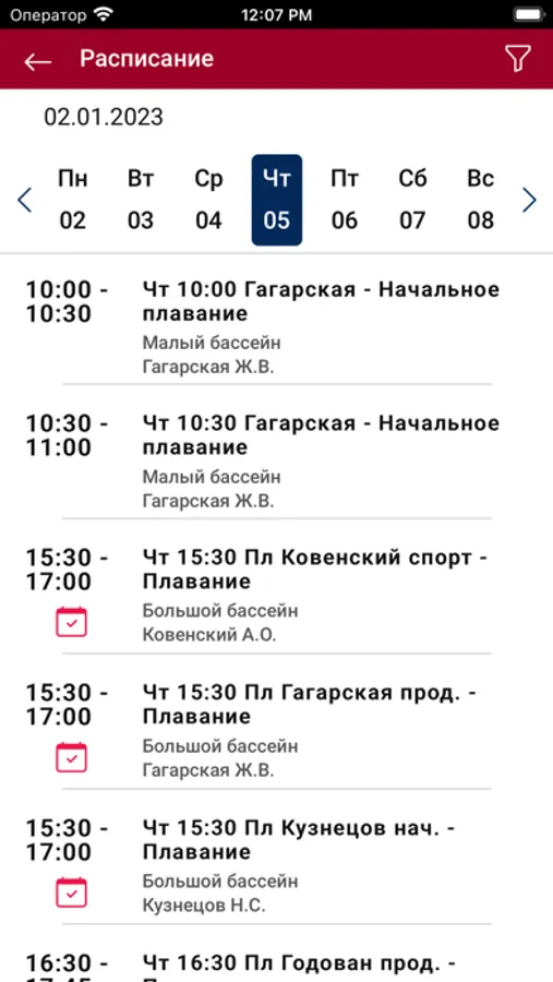 - бронировать места на занятиях;