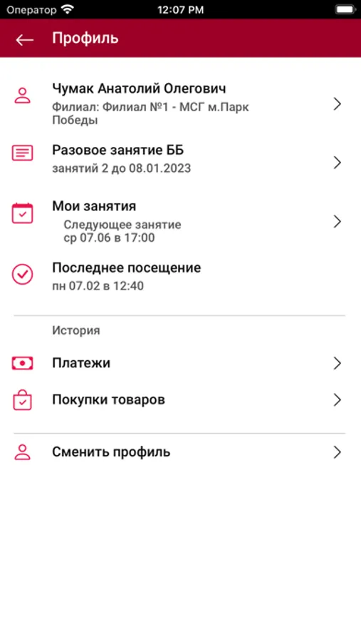 - следить за своими абонементами, посещениями и платежами;