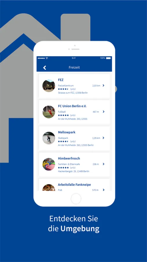 Informieren Sie sich z.B. über Geschäfte, Ärzte, Erstatten und über die Öffnungszeiten in Ihrer unmittelbarer Umgebung.