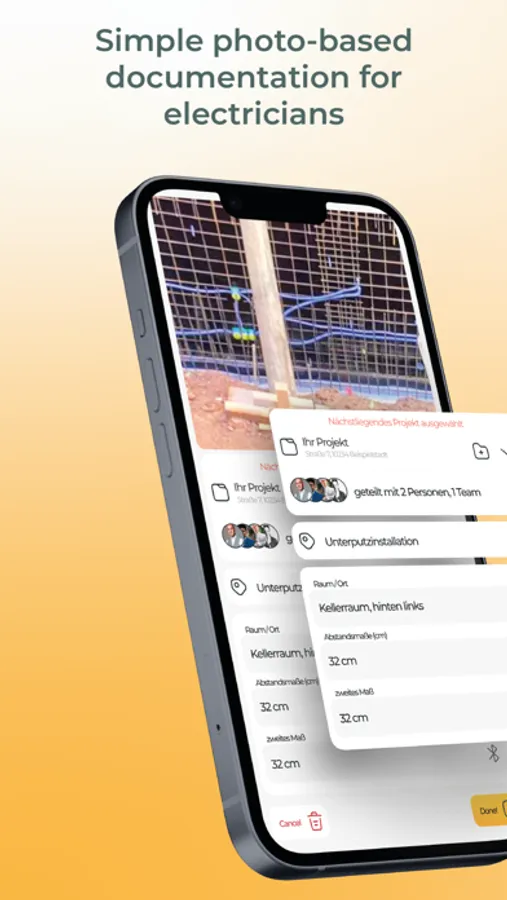 The ProDo easy app simplifies team communication: With the recording, all important information is automatically available to the relevant colleagues. Images and information no longer have to be sent and explained to different people. By automatically sorting all information into projects on site, there is no need to search through messages and chat histories. This makes it easier to prove a proper installation and saves you time and money: no more reworking by manually sorting images into individual projects.
