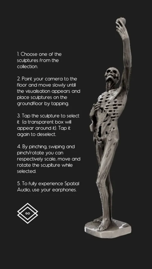 Turn your backyard, your city square or your local beach into a surreal sculpture exhibition. Place a sculpture on the floor, move, rotate and scale them and make pictures to share them with the community. Please do send us some, we're keen to see the places our artist's work end up. If you're a creator and want your work to be featured in the regularly updated app send us an email and let's talk!