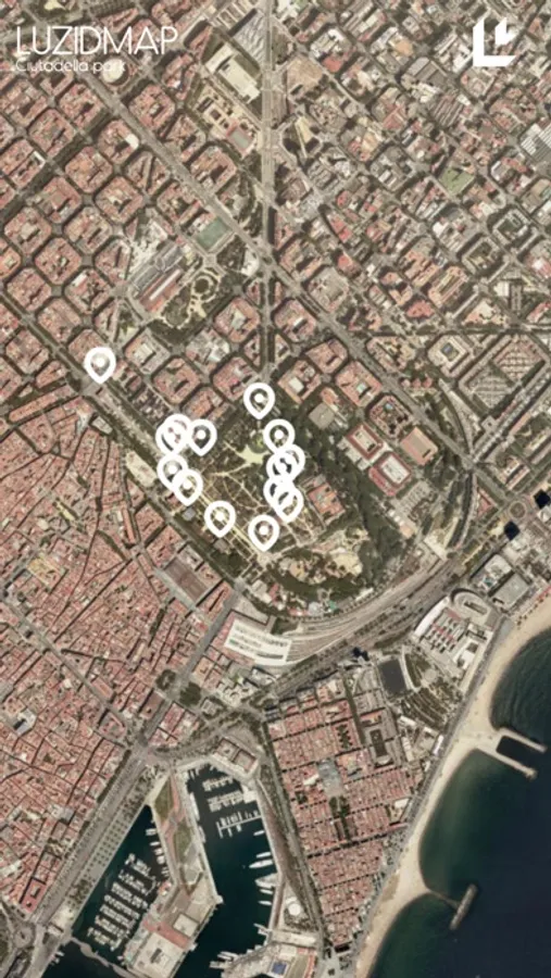 Descriptions and locations of key locations within the Ciutadella park in Barcelona including the distance.