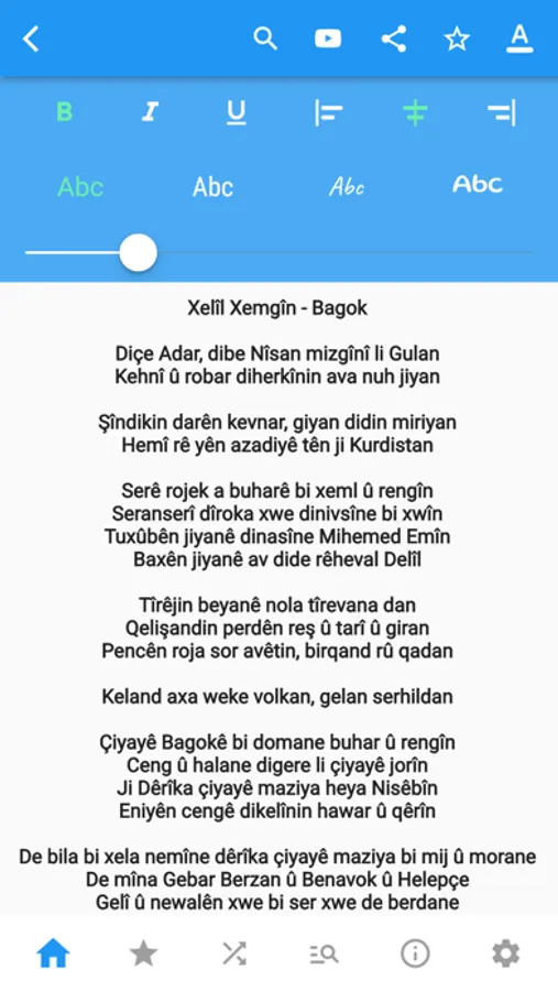 There are nearly 7000 lyrics and more than 800 singers in the app. With advanced search users can search also in lyrics. If a user like a song, can add it into favorite list or share it.