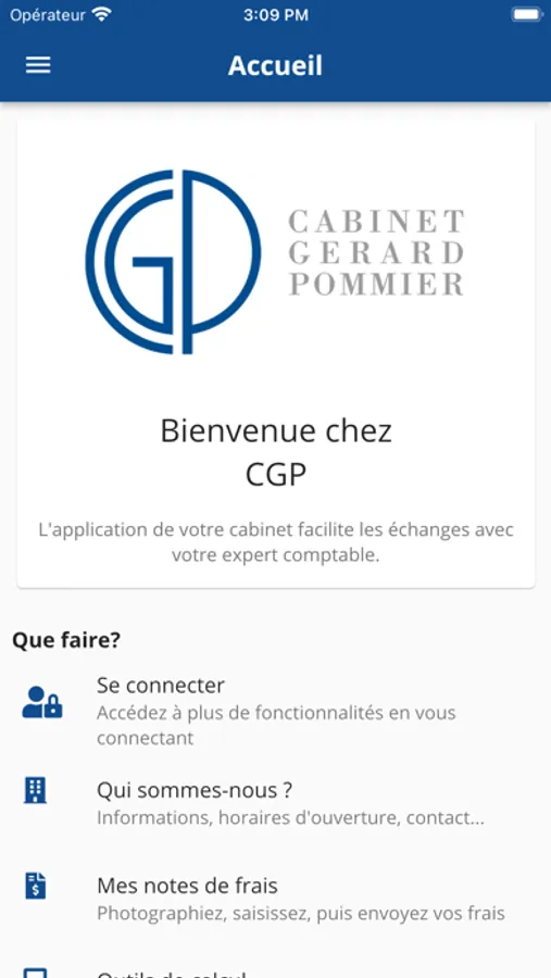 Because the world is changing, we offer you a handy application for managing your online account 7days/7 and 24h/24. This ease of use allows you anytime access to your documents, consult the news of the firm, or to gain visibility on various activities related to your record. We wish you a nice navigation!