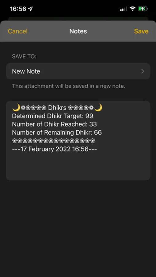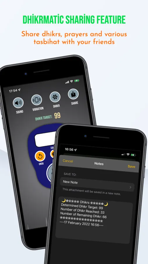 * You can also share the dhikr numbers you have taken, save them in your notes and use them for reminders later.