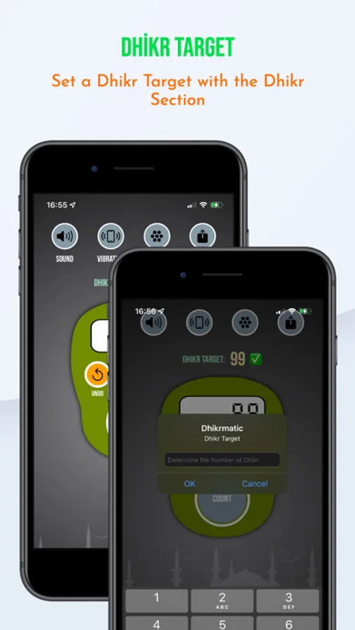 * Our dhikr counter gives warnings such as sound and vibration at every click, so you do not have to constantly look at the screen while dhikr.