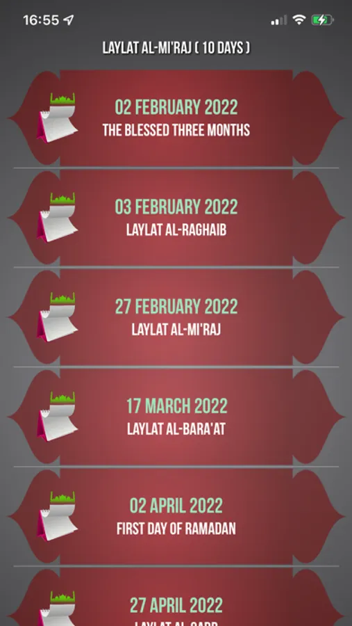 • Reminder of religious days and the ability to list religious days in the year