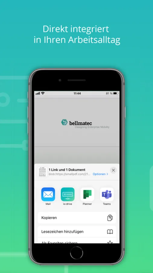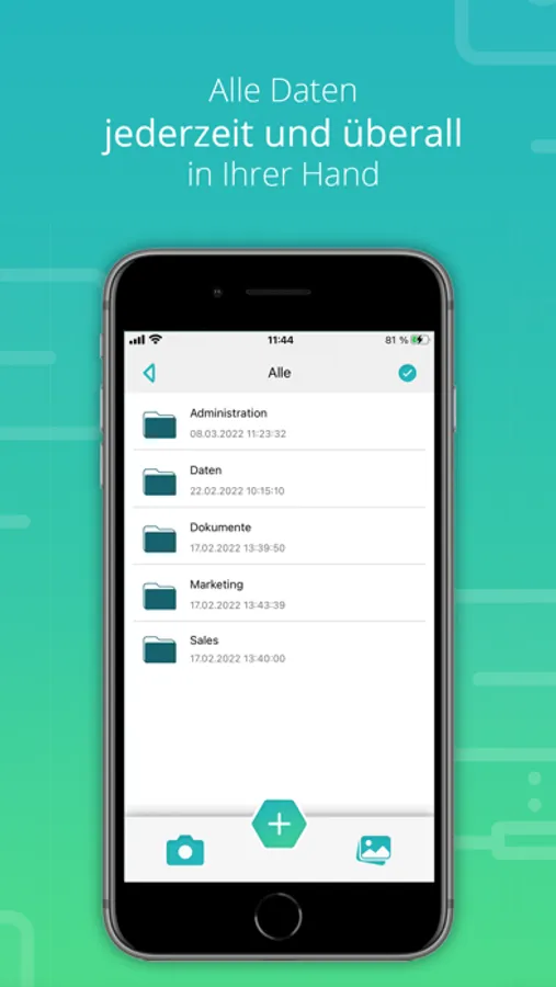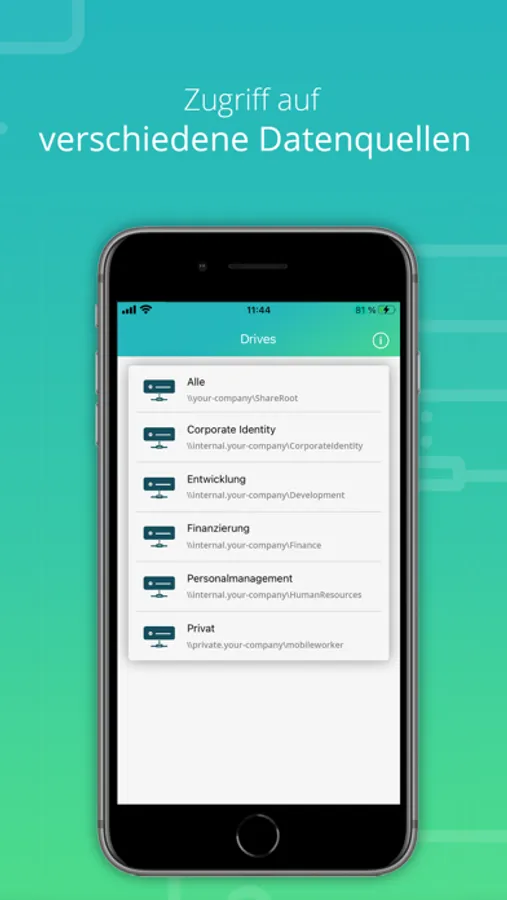 Statt umständlich über den Computer mit VPN oder durch Mailanhänge auf Unternehmensdaten zugreifen zu müssen, können Sie dies direkt von Ihrem Smartphone oder Tablet aus erledigen. Behalten Sie auch von unterwegs Ihre Unternehmensdaten stets im Zugriff.
