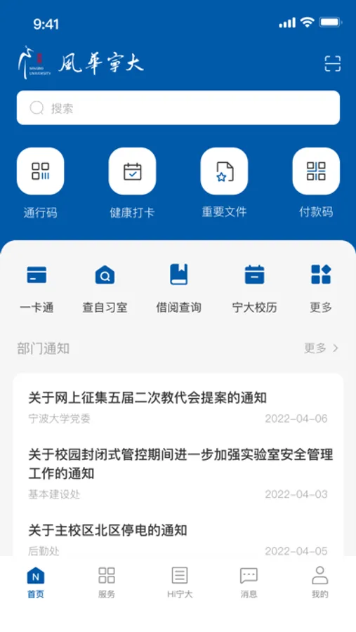 “风华宁大”是宁波大学在数字化改革背景下推出的官方移动应用,致力于打造师生喜爱的校内移动服务产品。APP以校内各类服务场景为刚需工具,新增媒体内容的聚合功能,以开放能力为校内外服务(应用)提供接入平台支持,以协作沟通能力为师生提供互动协作。