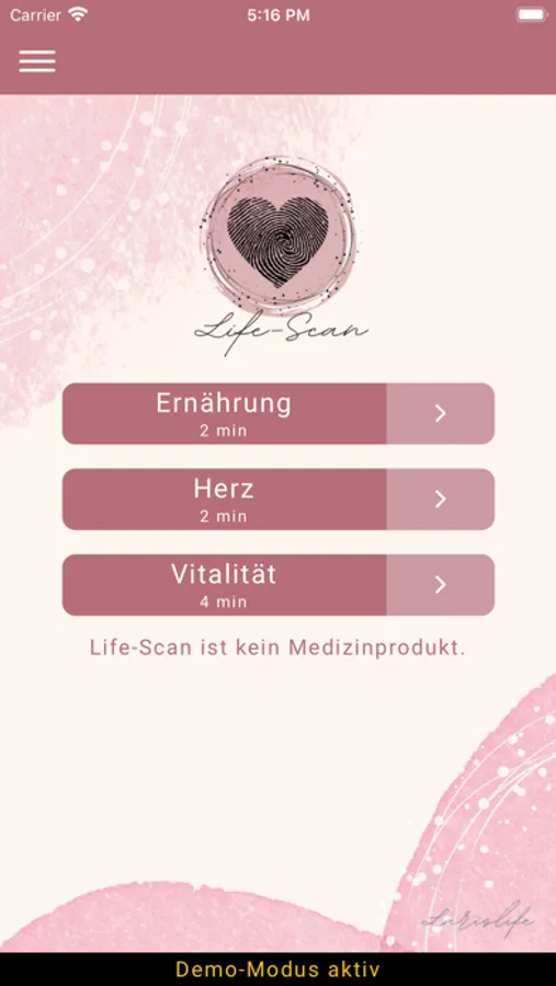 Life-Scan ist kein Medizinprodukt und darf nicht zur Diagnose oder Behandlung von Krankheiten eingesetzt werden!