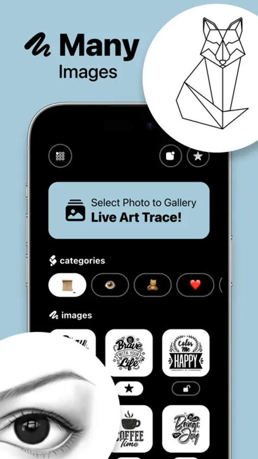You can learn how to draw by following the trace on your screen. If you want, you can paint your images to keep practicing how to draw with our application. You can even start your own tattoo business with this application!