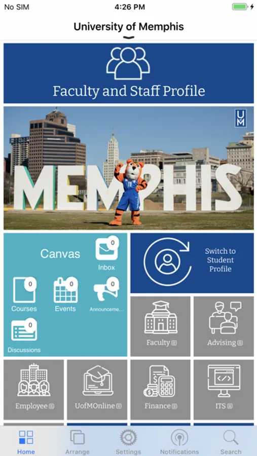 With this app, you can check out Campus News and the Events calendar to find out what's happening at the University of Memphis.