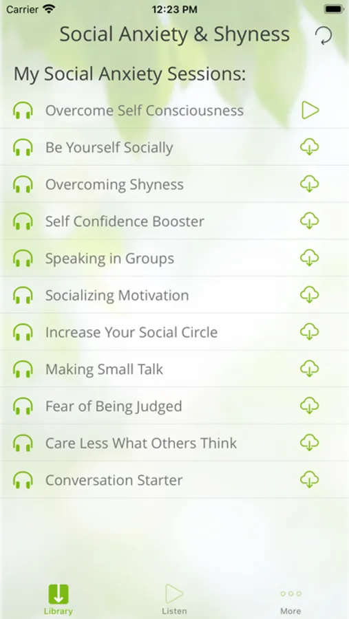 On of our popular social anxiety sessions 'Overcome Self Consciousness' is free inside the app to get you started right away. Then, if you like what you hear, you can unlock the other sessions with the monthly payment option.