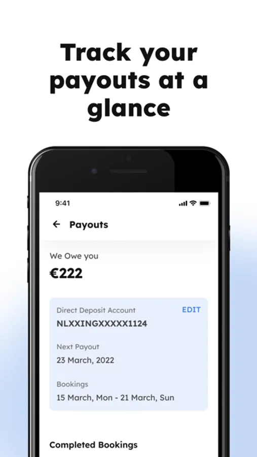 Payment system: receive weekly payouts, no more hassle sending invoices and cash payments. Track your payouts at a glance
