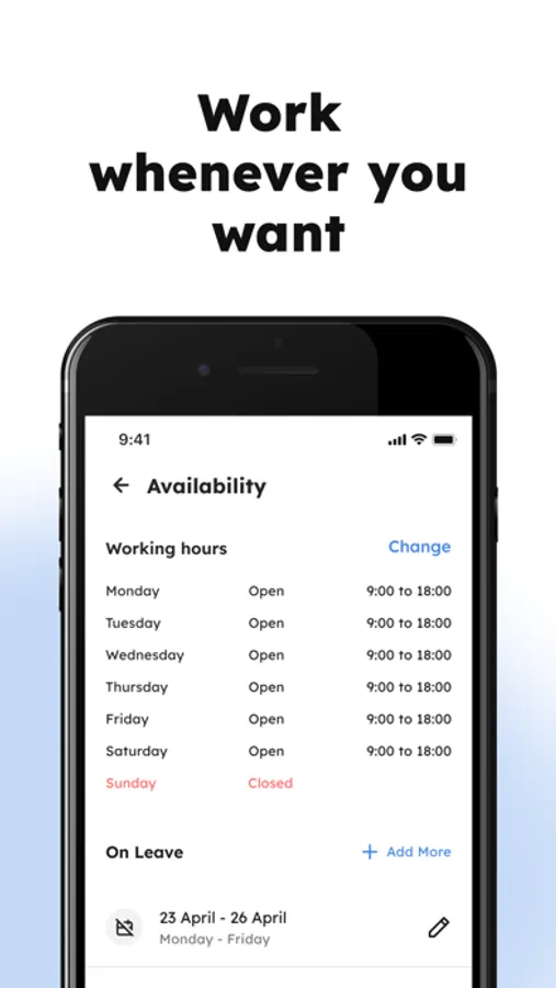 Bookings: manage your appointments, choose to accept new bookings, change requests from existing clients from anywhere 24/7 on your phone