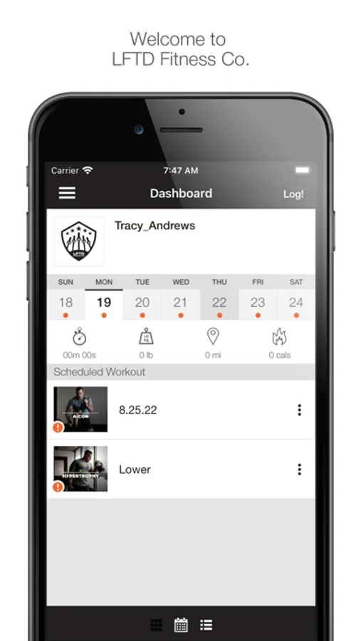 Log your workouts from anywhere with the LFTD workout-tracking app! View your logged workouts, and see upcoming scheduled workouts and appointments inside the app. Track your progress and get the most out of your LFTD transformation workouts!