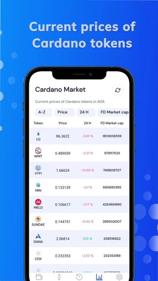 - Cardano Market: current prices of Cardano tokens expressed in ADA are now available in Bynet Wallet.