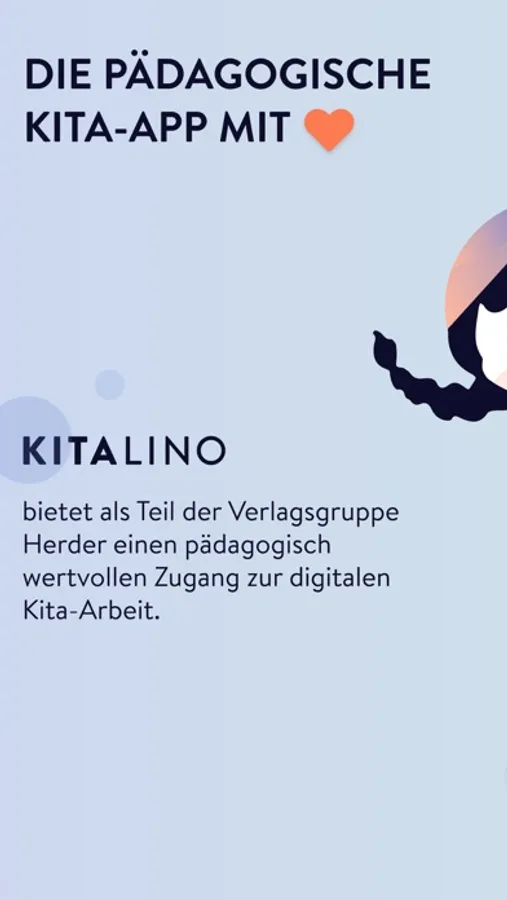 KITALINO bietet als Teil der Verlagsgruppe Herder einen pädagogisch wertvollen Zugang zur digitalen Kita-Arbeit. Fachkräfte begleiten Kinder mit digitalisierten Beobachtungsverfahren, Portfolios oder freier Dokumentation per Medien und kommunizieren auf einem schnellen und zugleich sicheren Weg mit Eltern und Familien. Die nachgewiesene Zeitersparnis und Entlastung im Kita-Alltag verschaffen den benötigten Freiraum für das Erfüllendste –persönliche Begegnungen und mehr Zeit mit den Kindern.