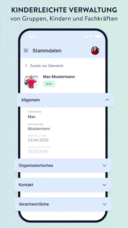 • Verwaltung zur Organisation von Kindern, Gruppen und Fachkräften