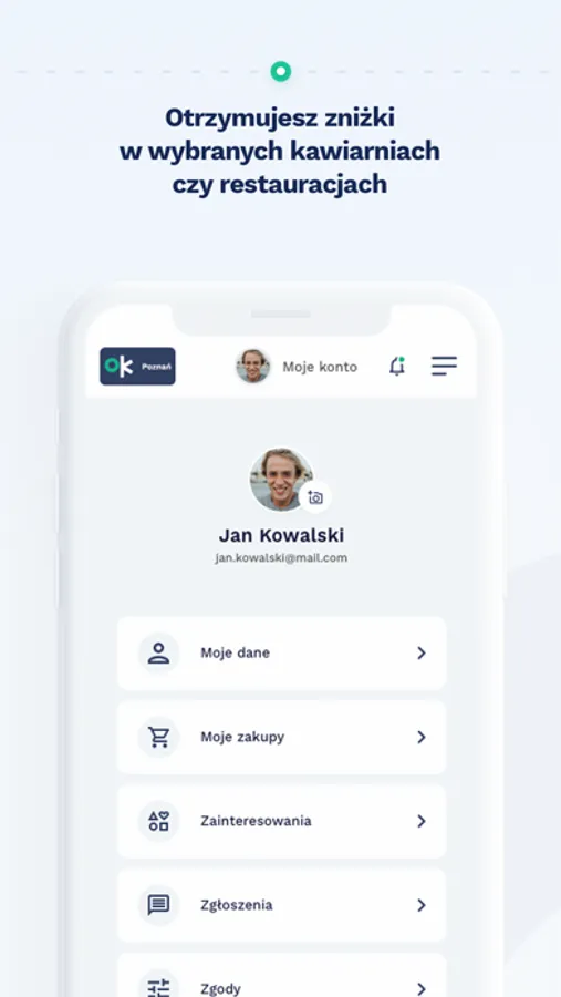 Dołączenie do programu jest proste. Ściągnij na swój telefon aplikację, zarejestruj się w Programie OK Poznań, a następnie zweryfikuj się jako osoba płacąca podatki w Poznaniu. I gotowe! Od tego momentu możesz korzystać z pakietu zniżek oferowanego przez Partnerów OK Poznań.