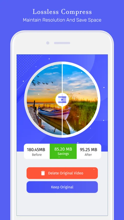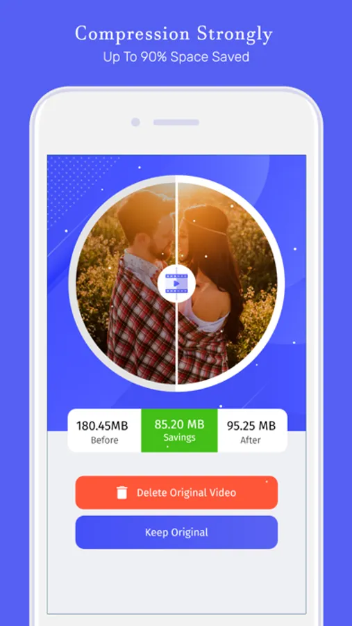 4. On the last screen it will show you the screen where you can see the video before compressing and after compressing and how much you saved the MB while compressing and then there is two options you can delete the original video from the gallery or you can keep the original file.