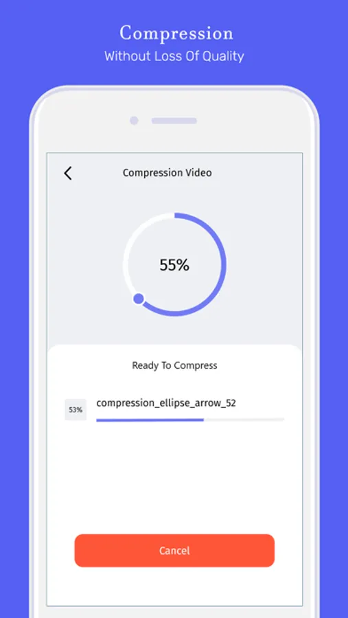 3. On third screen the progress bar will show the compressing of the video and on the below there is a cancel button if you want to cancel the process.