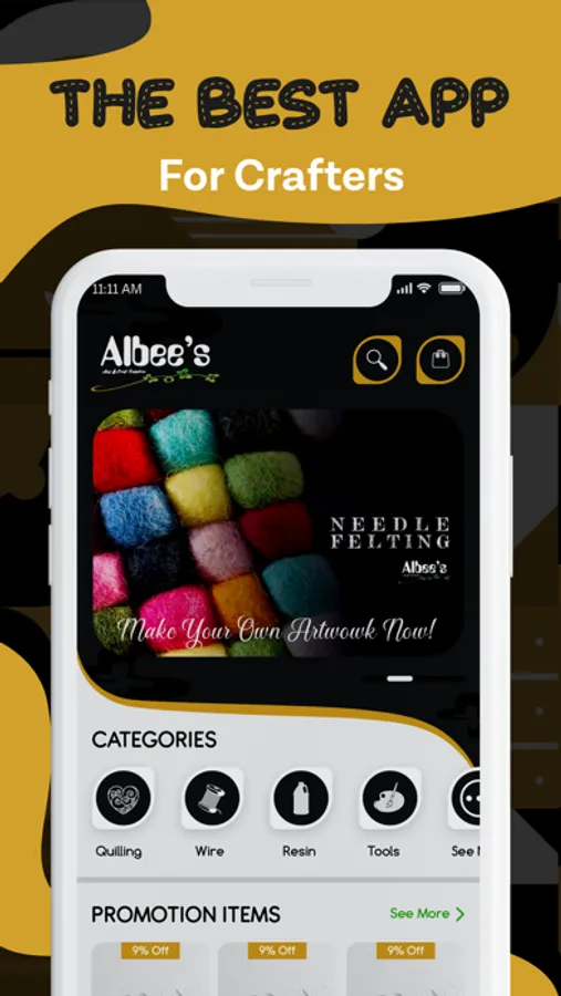 Albee's application is to promote popular handmade arts & crafts. This is also an application where can corresponding art & craft supplies can be found.