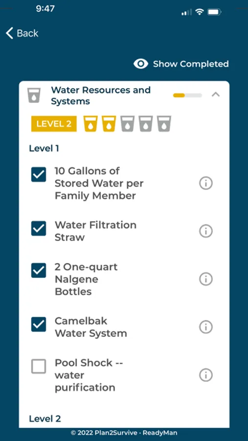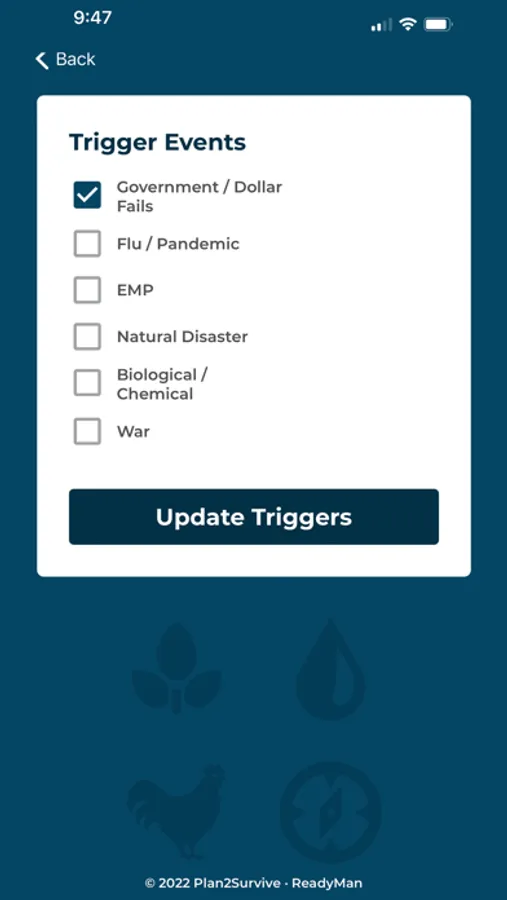 Plan2Survive is the #1 family preparedness survival app. Quickly gather emergency supplies, check them off, sleep easier. Get Amazon® links for gear & food recommended by a retired U.S. Navy SEAL.
