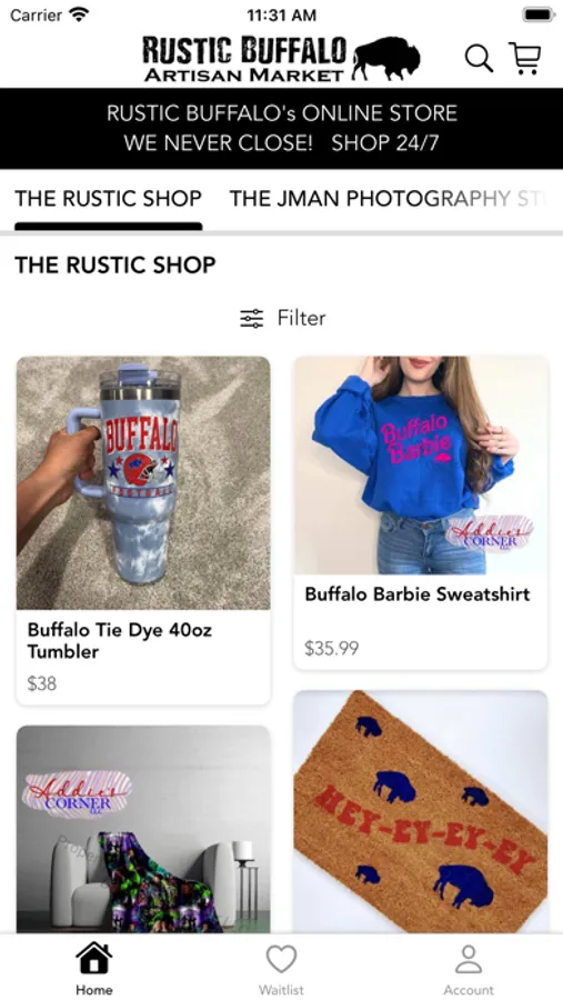 Welcome to the RUSTIC BUFFALO App! The best way to shop with RUSTIC BUFFALO on iOS!