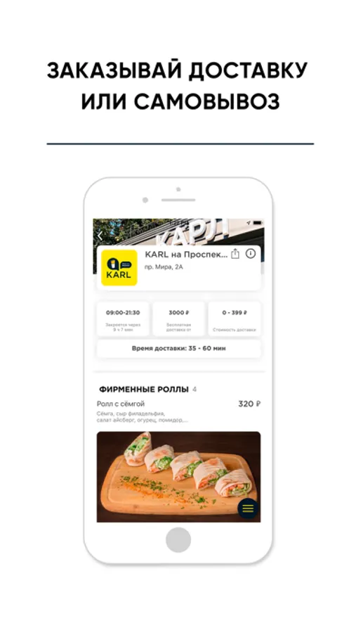 KARL - это современный формат, сбалансированный вкус и доступная цена. Мы используем овощи отборного качества, мясо маринуем по технологии поставленной европейским шеф поваром, сыр Филадельфия берём лучший из тех, что представлены на рынке. Заказывайте доставку в нашем приложении или оформляйте заказ с собой. Укажите время визита, и мы упакуем всё точно к этому моменту.