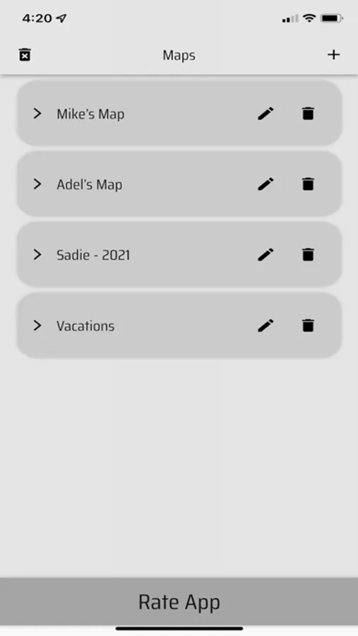 The US States Visited app lets you keep track of the states you have visited in the US. You can create up to 20 different maps! For each state, you can mark it as visited, rate it, and add a small description. Also, you will see the capital of the state, the estimated state population, and the state flag. Good luck filling in the map!