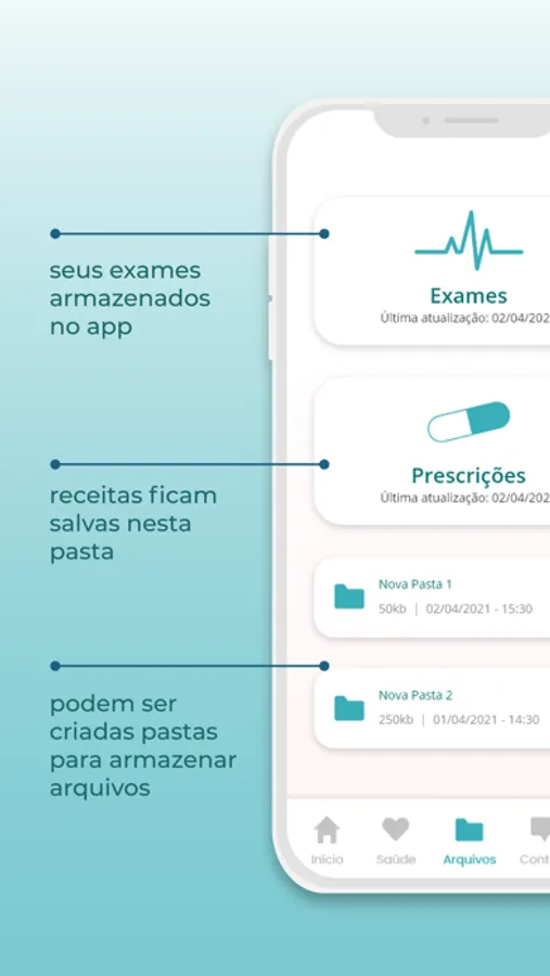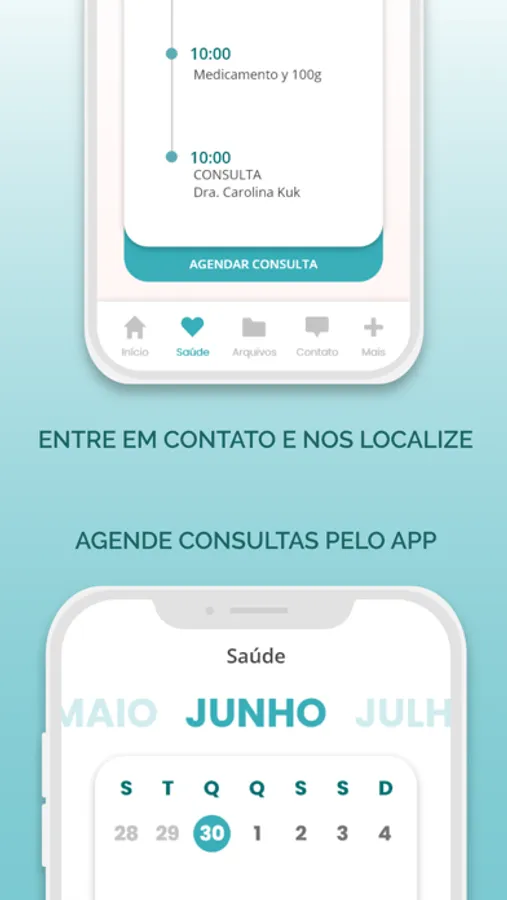 Agora você pode agendar consultas, ter receitas e exames sempre disponíveis no seu celular e receber lembretes de medicações e consultas através do nosso aplicativo.