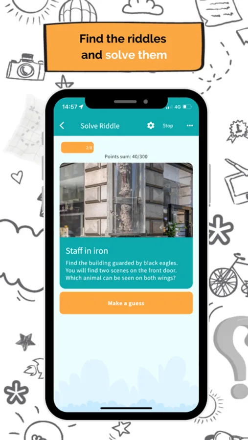 You will get a set of riddles that lead you through the city. Everything around you can be part of the solution, you have to look everywhere.