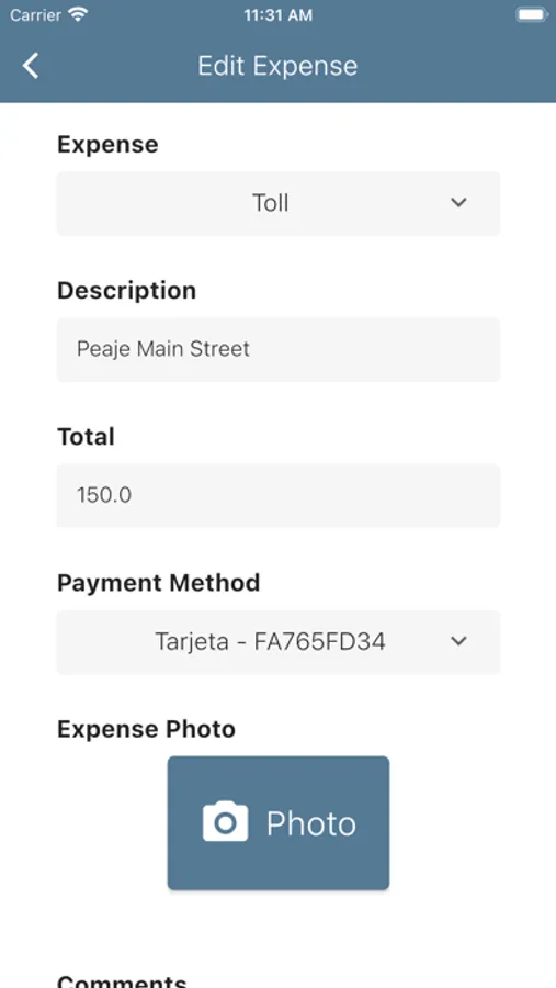 - Add trips expenses and attach photos or files