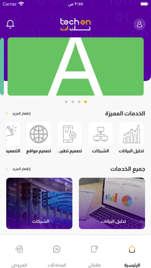 Now, through the TechEn application, you can submit your request in a distinctive, easy, and professional way from several departments, and send what you want to all service providers, who are companies and institutions that provide services in the field of information and communication technology. They will contact you by sending quotations based on your request, and you can accept, reject, or negotiate with Service Provider In addition, you can search and view the offers and works of all service providers and many other advantages.