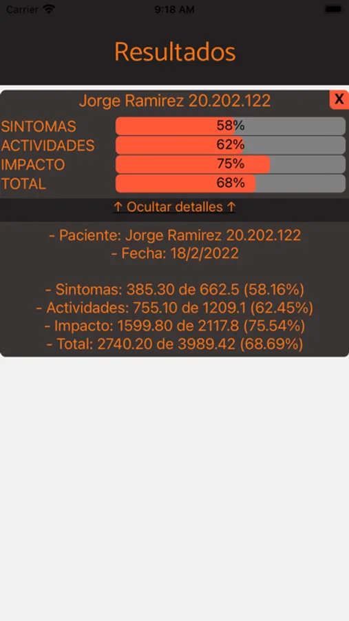 Los resultados se pueden copiar, para así poder pegarlo en cualquier otra app de tu celular (como alguna app de mensajería para enviarlo directo al paciente) o para poder pegarlo en su historia clínica.