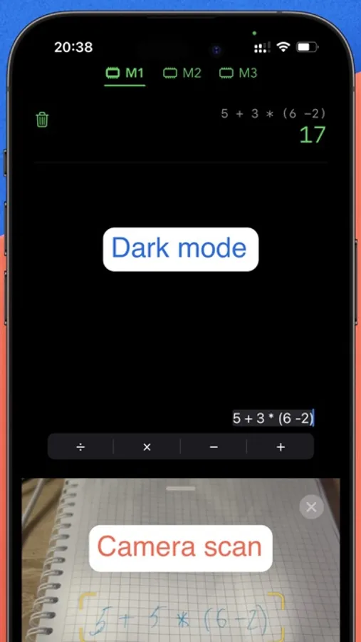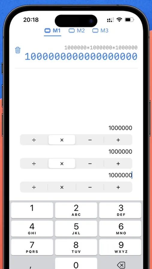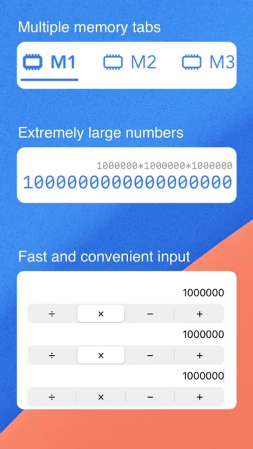 The tabular view makes it easy to summarize a restaurant check or calculate an entire expression from a school textbook. Don't fear making mistakes due to real-time editing, you can always correct a specific number or operand and recalculate the entire expression immediately. The challenge for this program was to move away from the skeuomorphism that mimics the old plastic calculators (which are not so easy to use) and combine the power of spreadsheets with the simplicity of a conventional calculator. Absolutely no limits on number size!