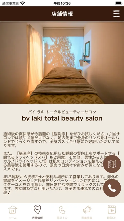 店舗のマップが表示され、地図アプリとも連携しているので、初めてのご来店の時も簡単に見つけることができます。
