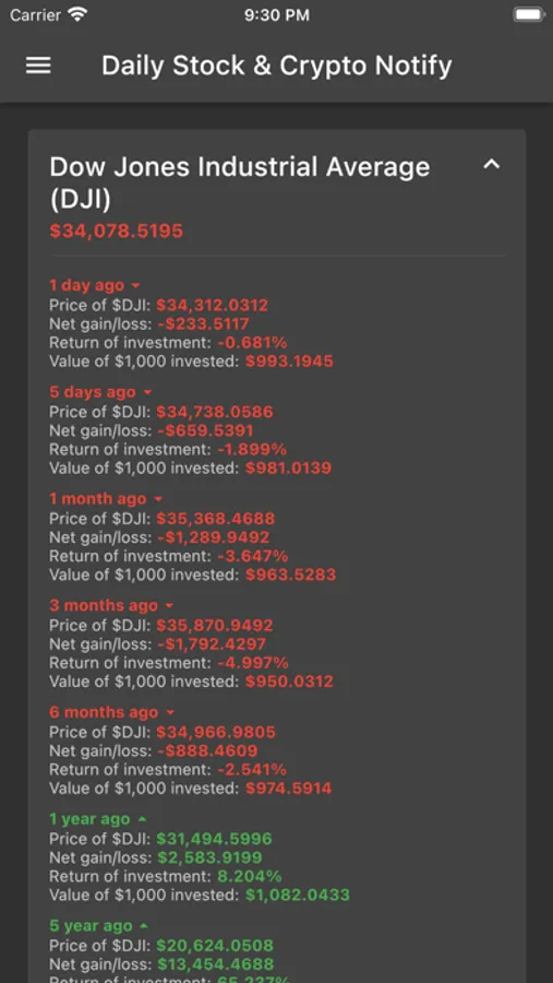 The notifications are sent right after the stock market opens at around 9:35 a.m. and right after it closes at around 4:05 p.m.