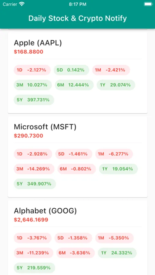 The app itself contains other major stocks from the US markets, including: