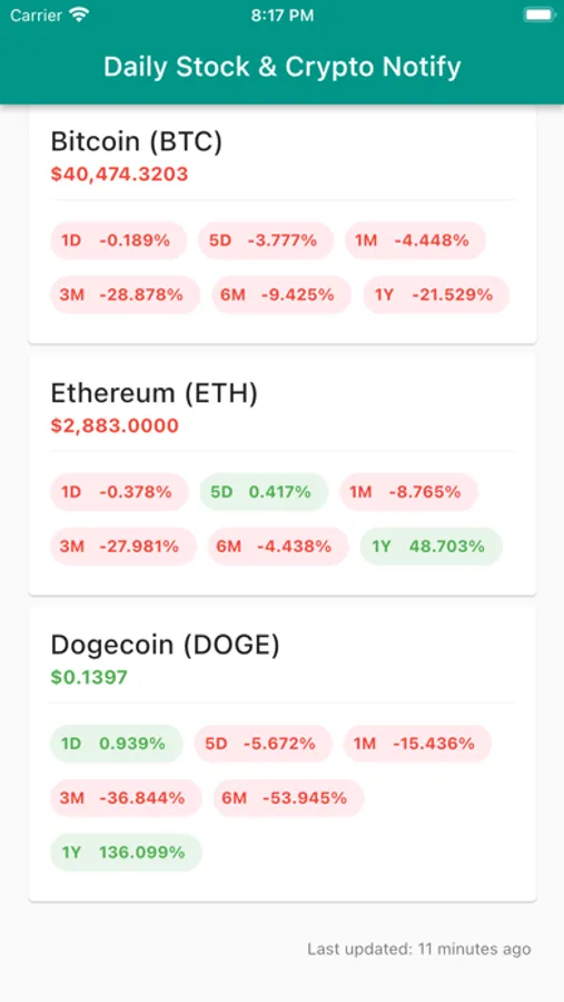 The notification includes prices of the main indices used for financial gurus, Dow Jones Industrial Average, Nasdaq Composite, and the S&P 500, the cryptocurrencies that are sent are 3 of the biggest crypto assets by market cap: Bitcoin, Ethereum, and Dogecoin. All these values are sent and valued with comparisons to their 1D, 5D, 1M, 3M performances.