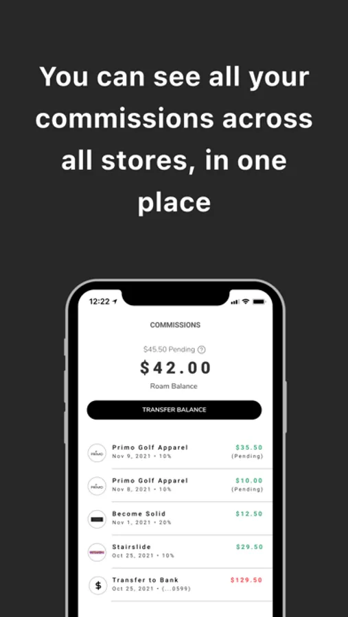 Roam is the mobile app that enables you to get paid for sharing the products you purchase with friends, family, and followers. It automatically syncs the products you purchase from Roam-partnered stores, creates referral links automatically, tracks all your commissions, and allows you to cash out your commissions directly to your bank account. Download the app to learn more and try it for yourself.