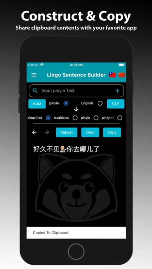 • Copy your creation to the device's clipboard using Lingo's Copy button.