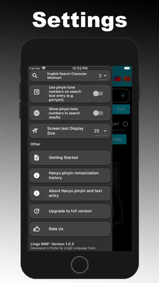 Lingo MNF is a free version of the definitive Mandarin Language Romanization input tool to assist speakers who struggle with keyboard text input and spelling. It can also be used as a great learning tool & dictionary- all contained within this single app on your device- on the go & when you need it- without the need for any type of data or wifi connection!!!